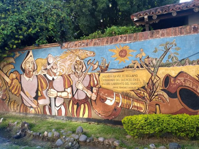 At this restaurant we found an alternative to the usual offerings: Tacos! The soft flour tortillas held copious amounts of shredded beef, perfectly seasoned. With the traditional condiments of guacamole, pico de gallo, and sour cream, we enjoyed a small taste of home. We also liked this artwork.