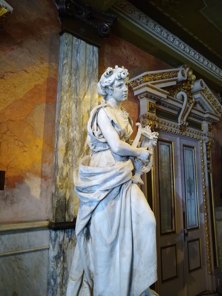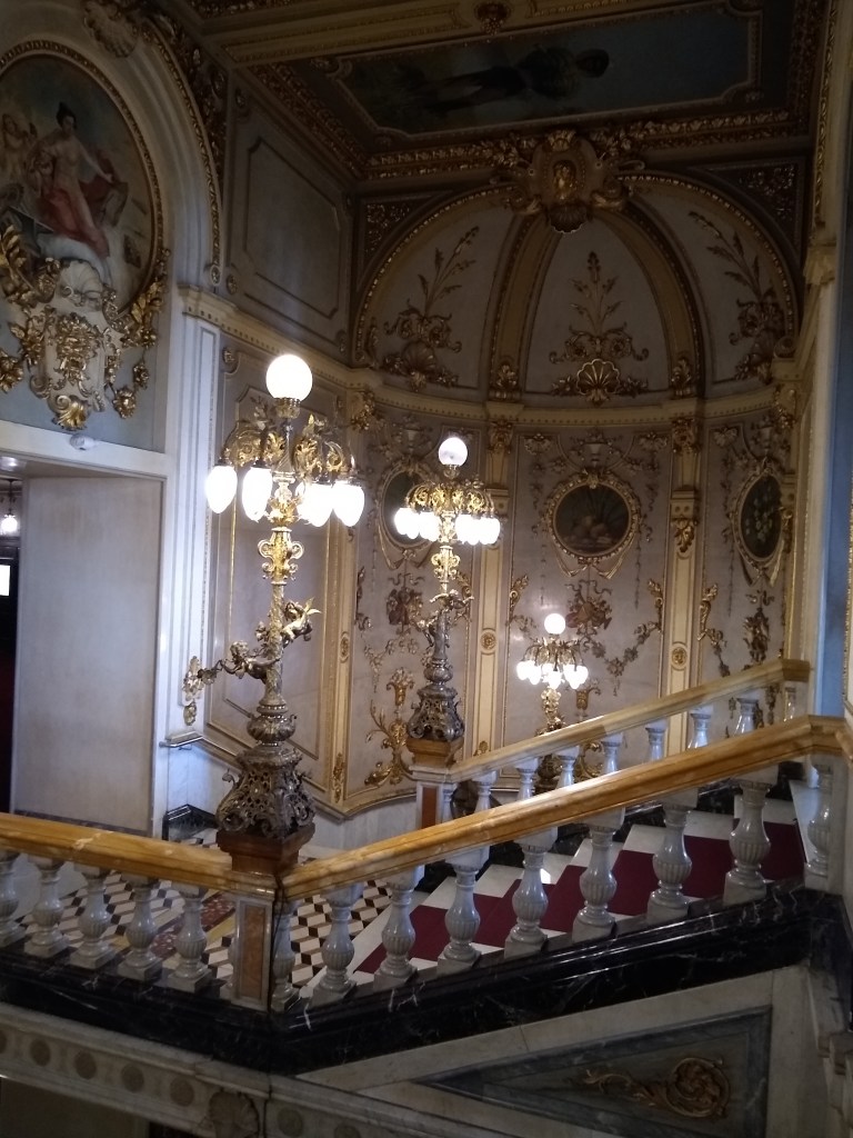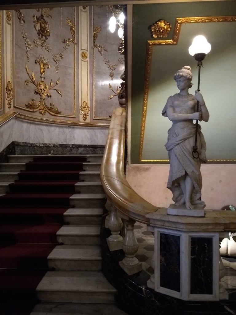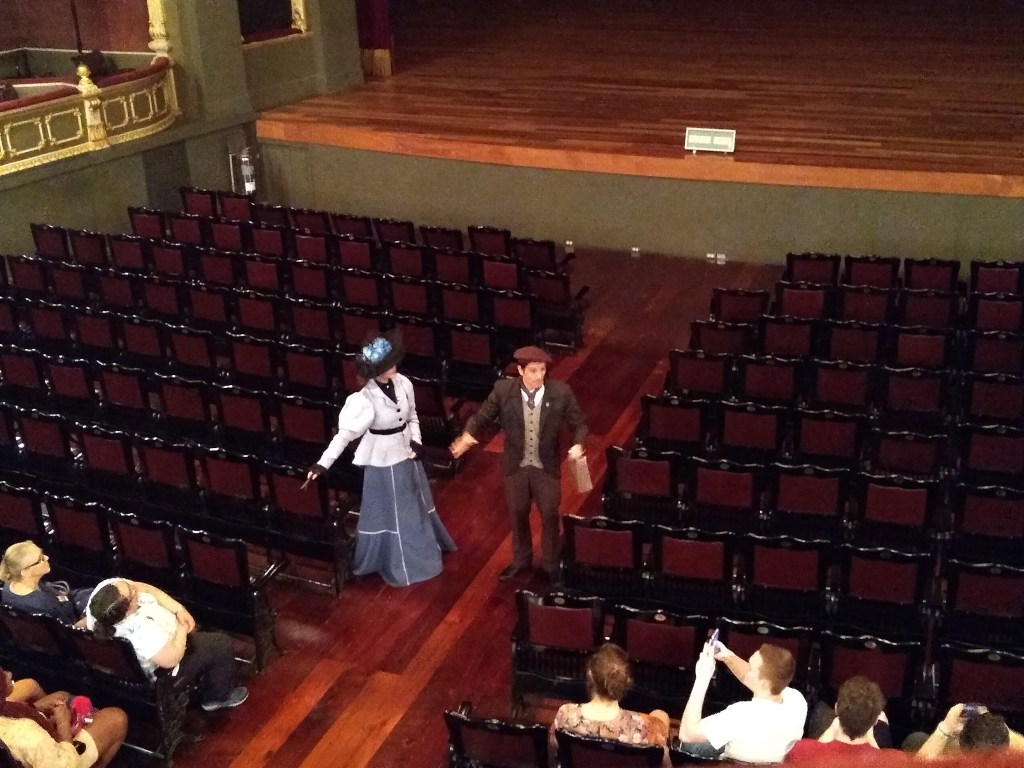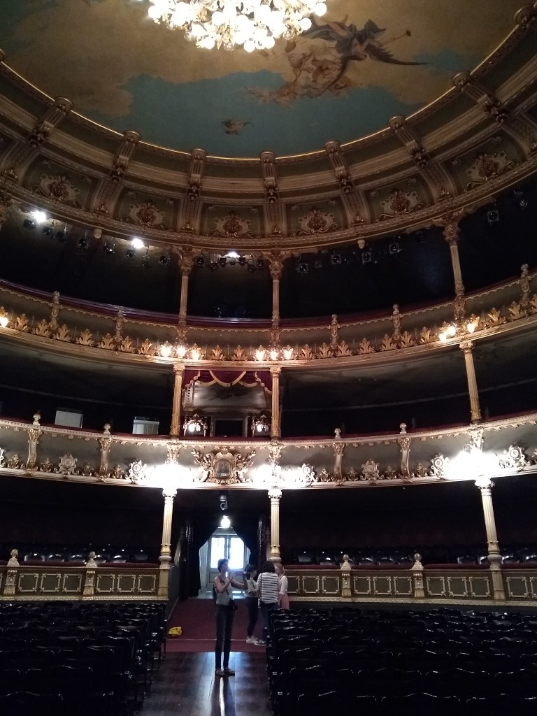 We also toured the Teatro Nacional. This theater was constructed in the late nineteenth century. It is smaller than other national theaters, and could use a facelift of sorts, but it nonetheless has a charming elegance and thoughtful architectural and design flourishes. We hitched a ride with a group of kids who were getting a tour from actors in period costume, playing the parts of the building architect, the President and First Lady of Costa Rica. It was nice to be around youthful energy .
