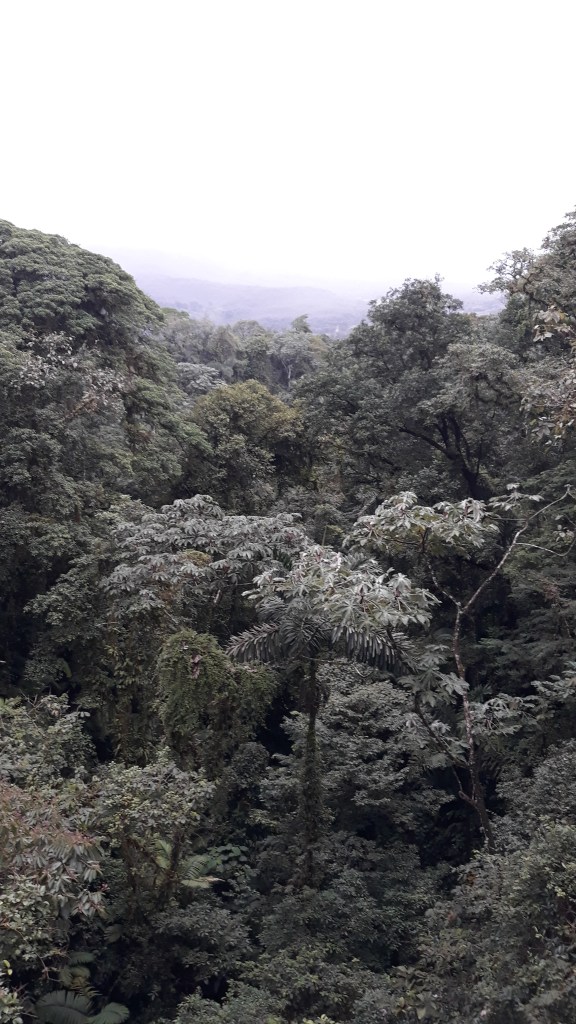 Alonzo, our guide went through a solid month of training to be a guide here. Misitico is privately held land – 600 acres – that the family opened to the public 20 years ago. It must have taken 20 years before that to prepare it. The paths are paving stones; there are handrails; the system of suspended bridges is extensive. We marveled at the team of engineers it must have taken to create this wonder: civil, geo-physical, ecological… Workers are out cleaning leaves from the walkways at various points – not too many to be intrusive. Then there is the training and equipment that the guides have.