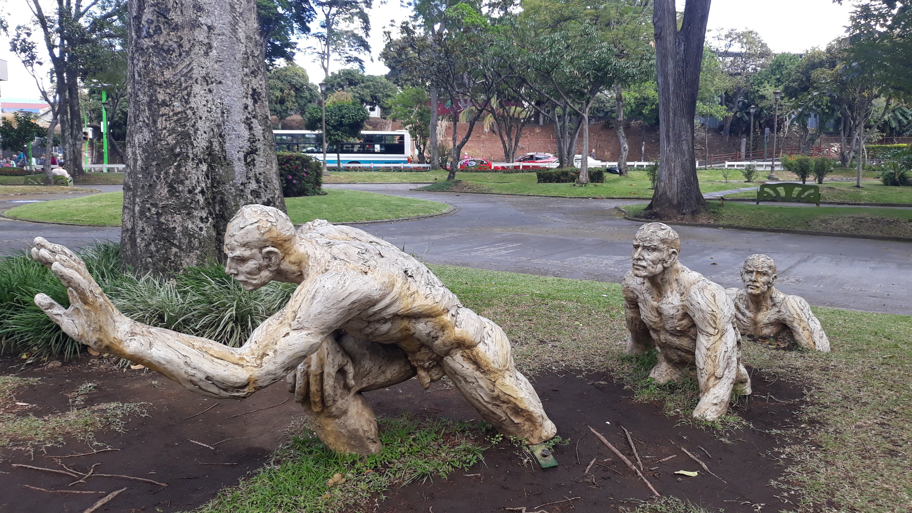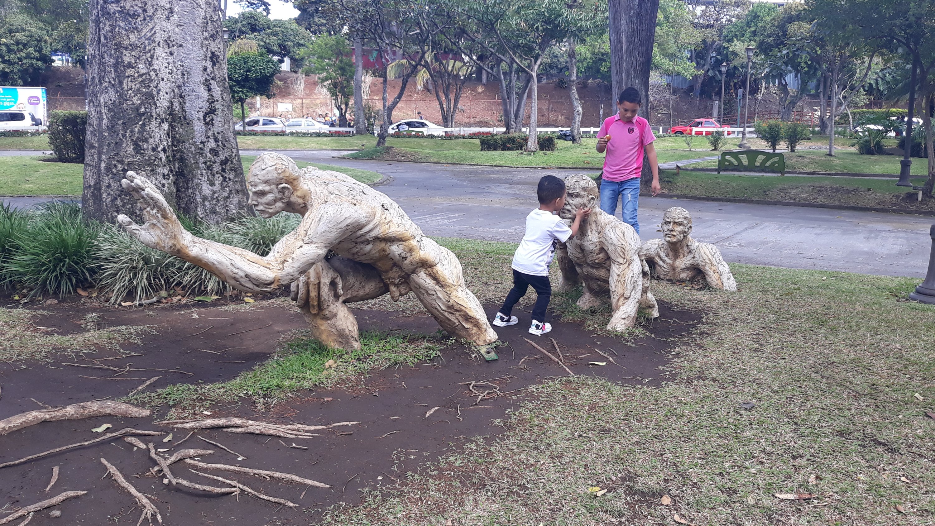 Near the stadium folks played around an overgrown lagoon, and children fed birds. Some of the trees around the lagoon had been removed and the trunks were carved to reveal their inner parrots and macaws.