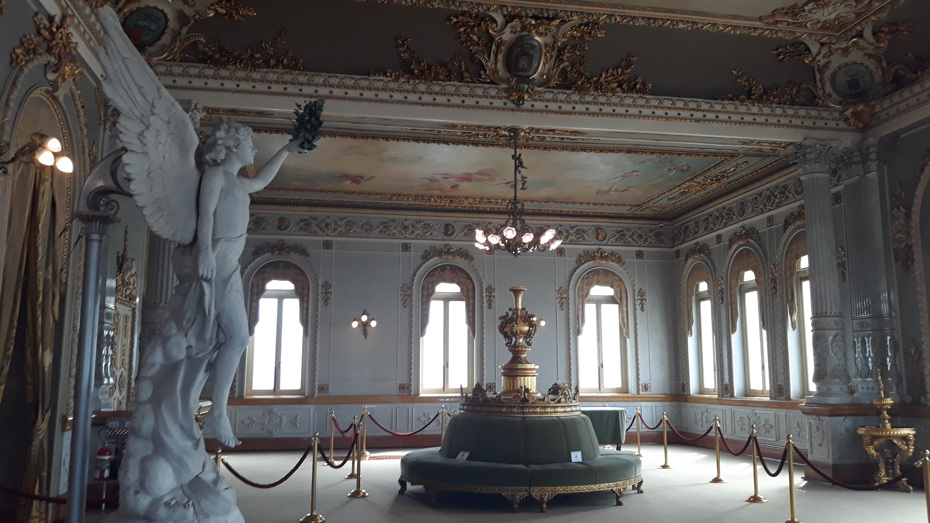 Interesting floor tileCeiling Mural in Entrance FoyerTour guides in period costume