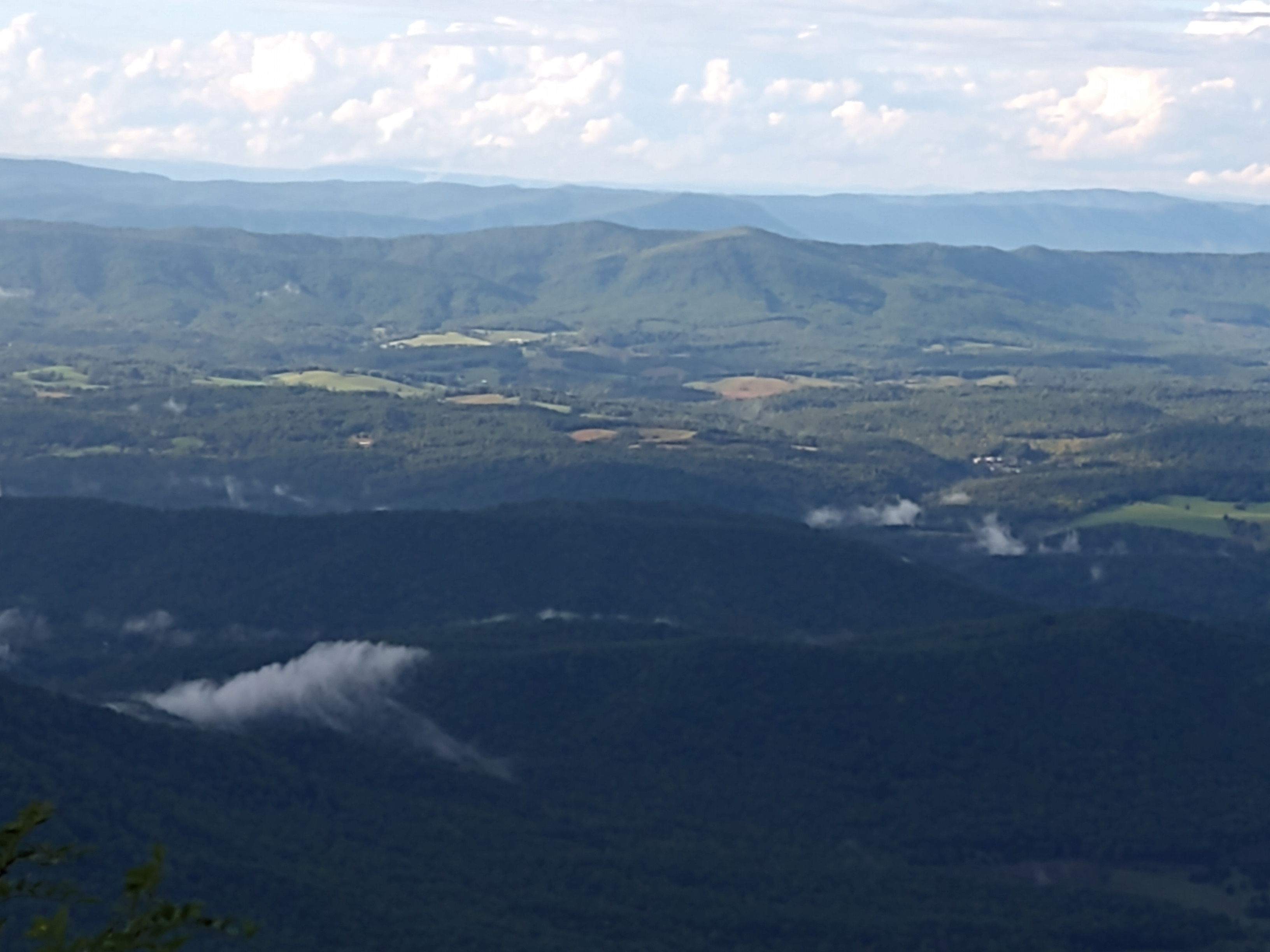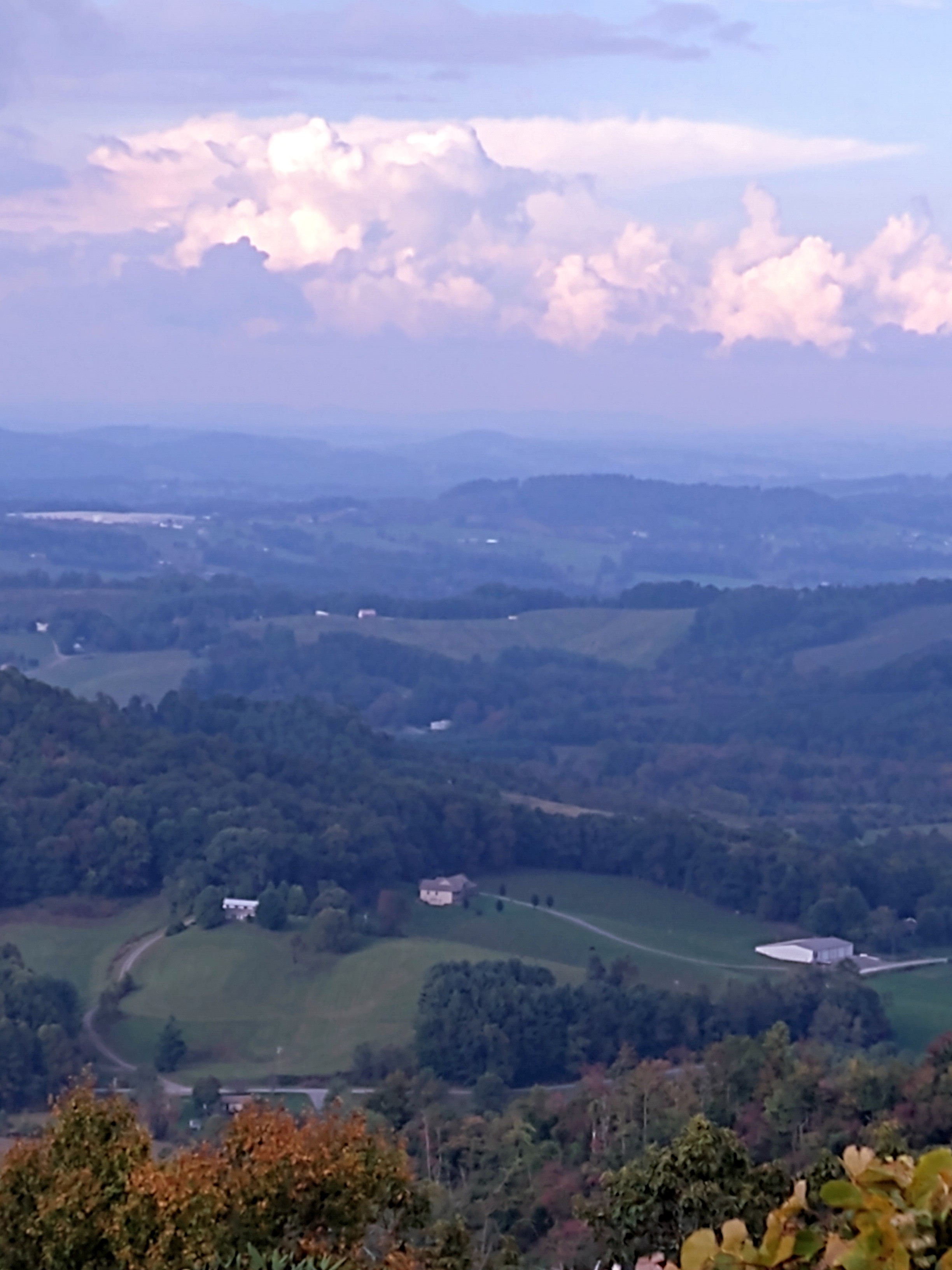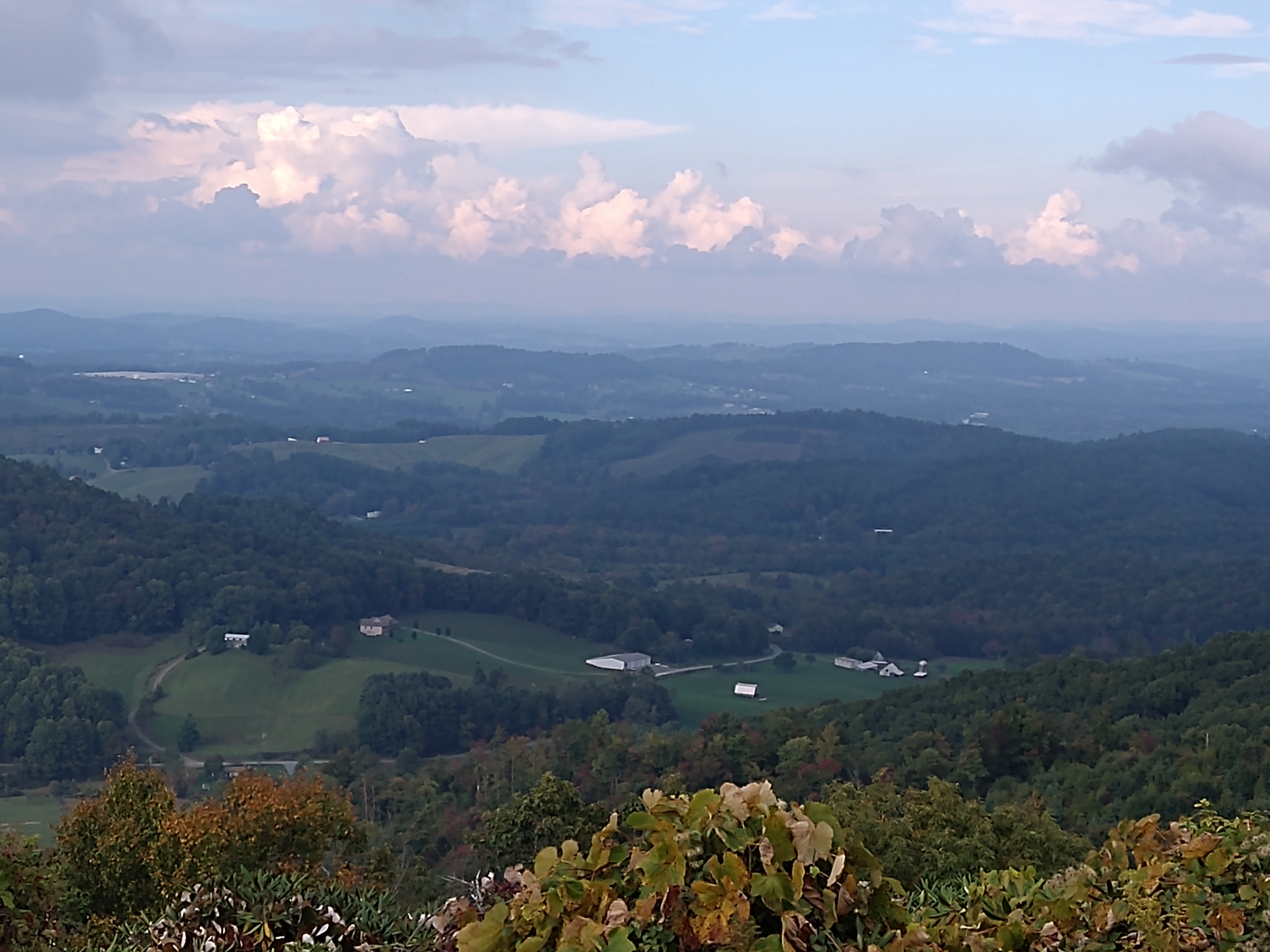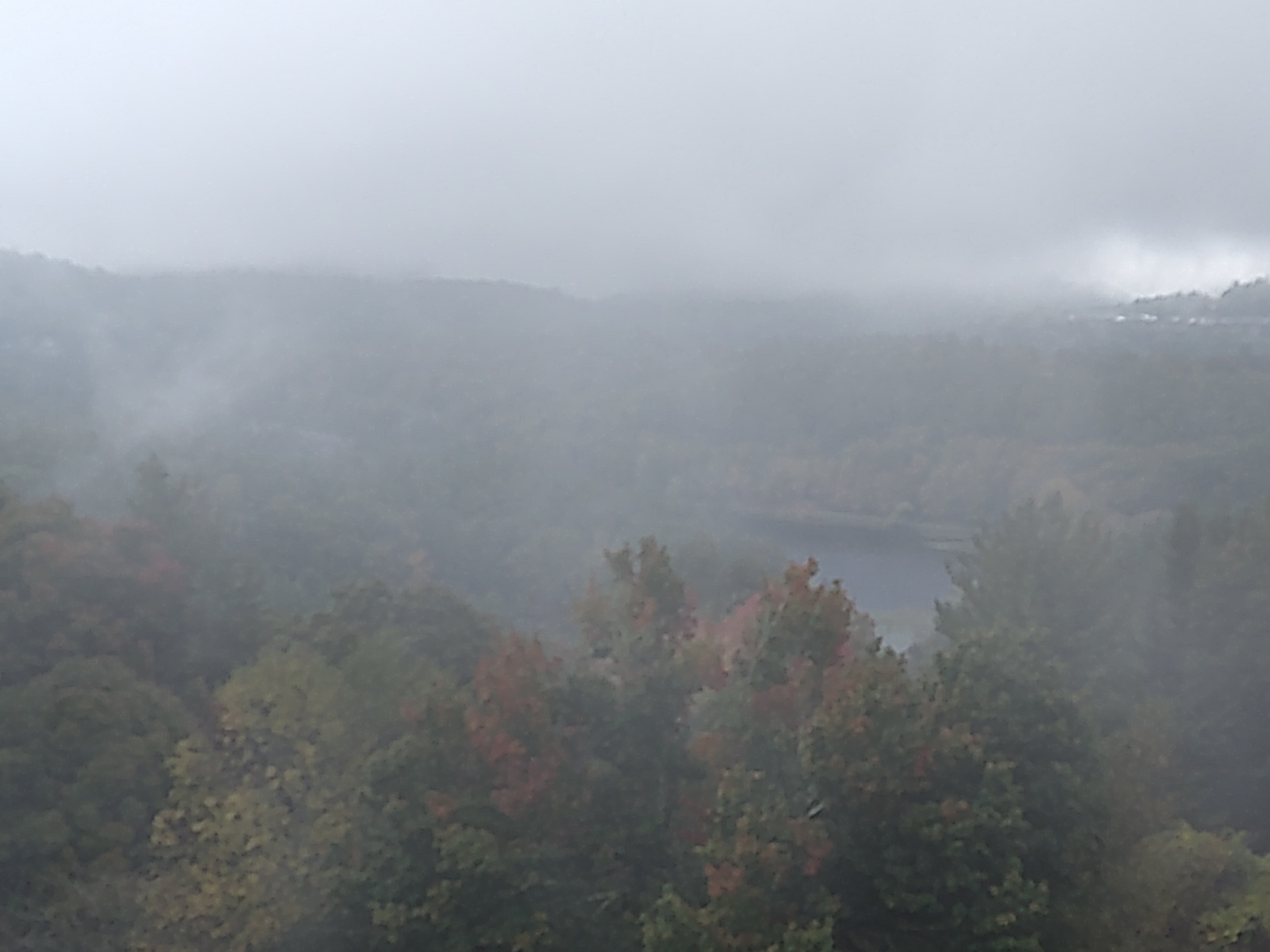 This photo and the next go together.Behind us, somewhere behind the clouds is Clubman’s Dome. That’s where I started my Appalachian Trail trek. Julie and i walked it south, 100 miles to Helen GA. That was 40 years ago!Some color showing up …