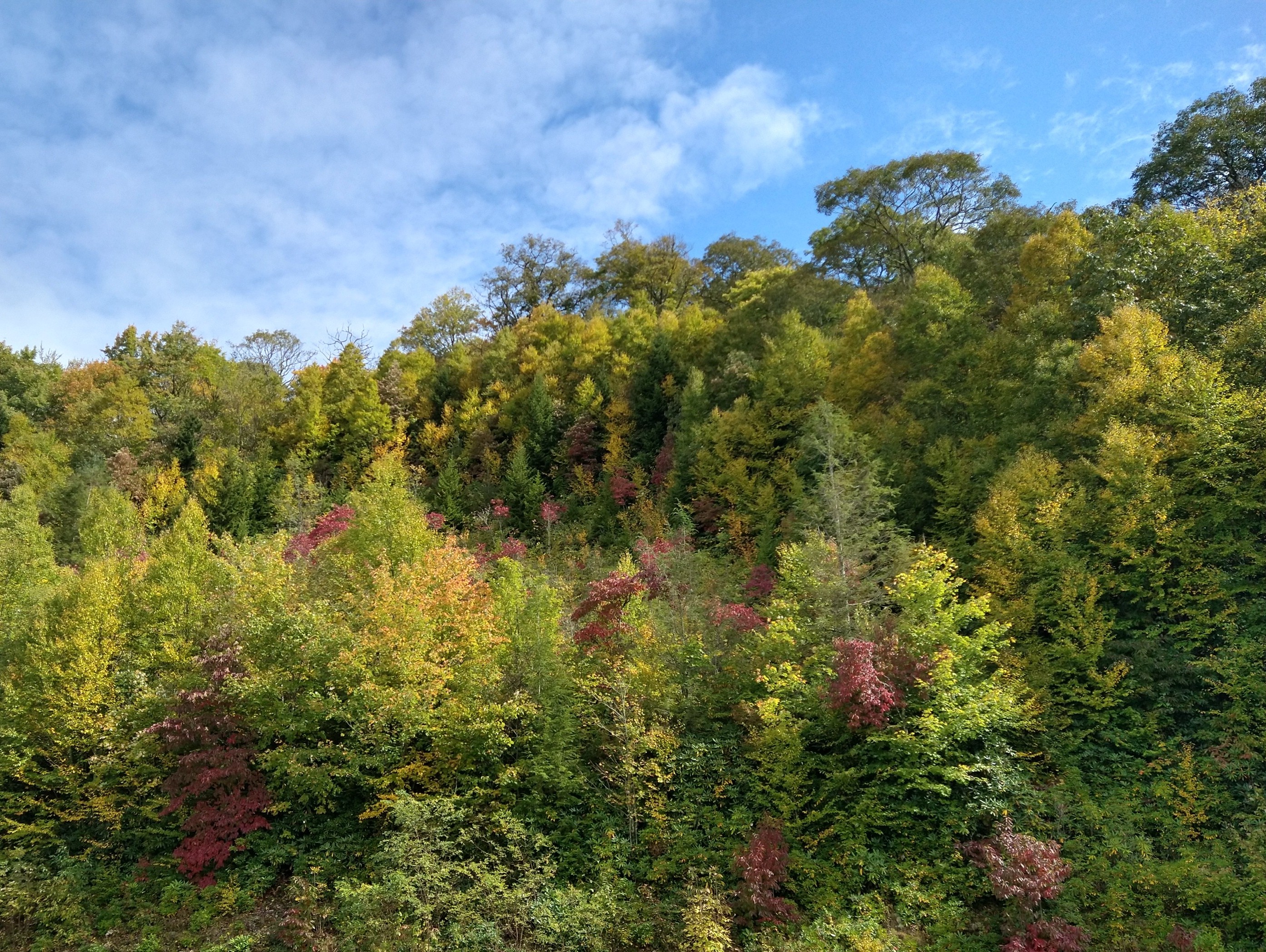 is actually pretty darn green. Although some fall leaf color is beginning to show up. Tree coverage is so dense that you can’t imagine there might be an issue regarding deforestation. Thanks be for national parks!