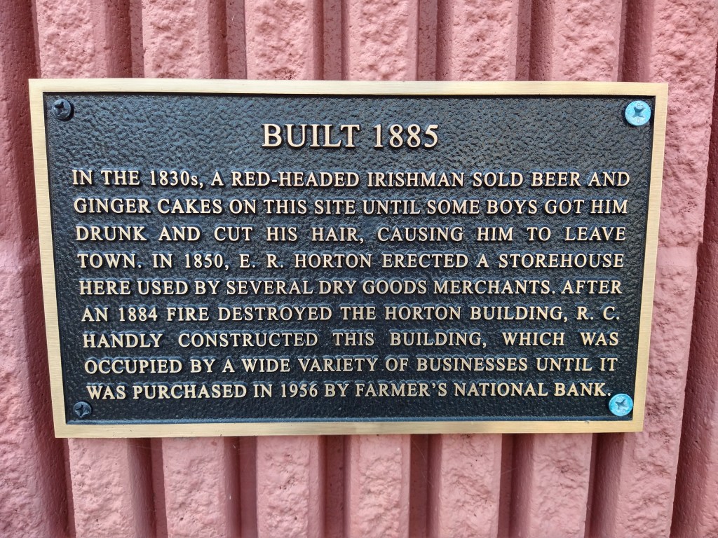 Buildings around the square have plaques on them detailing the history of the businesses located in each one. Here is my favorite.