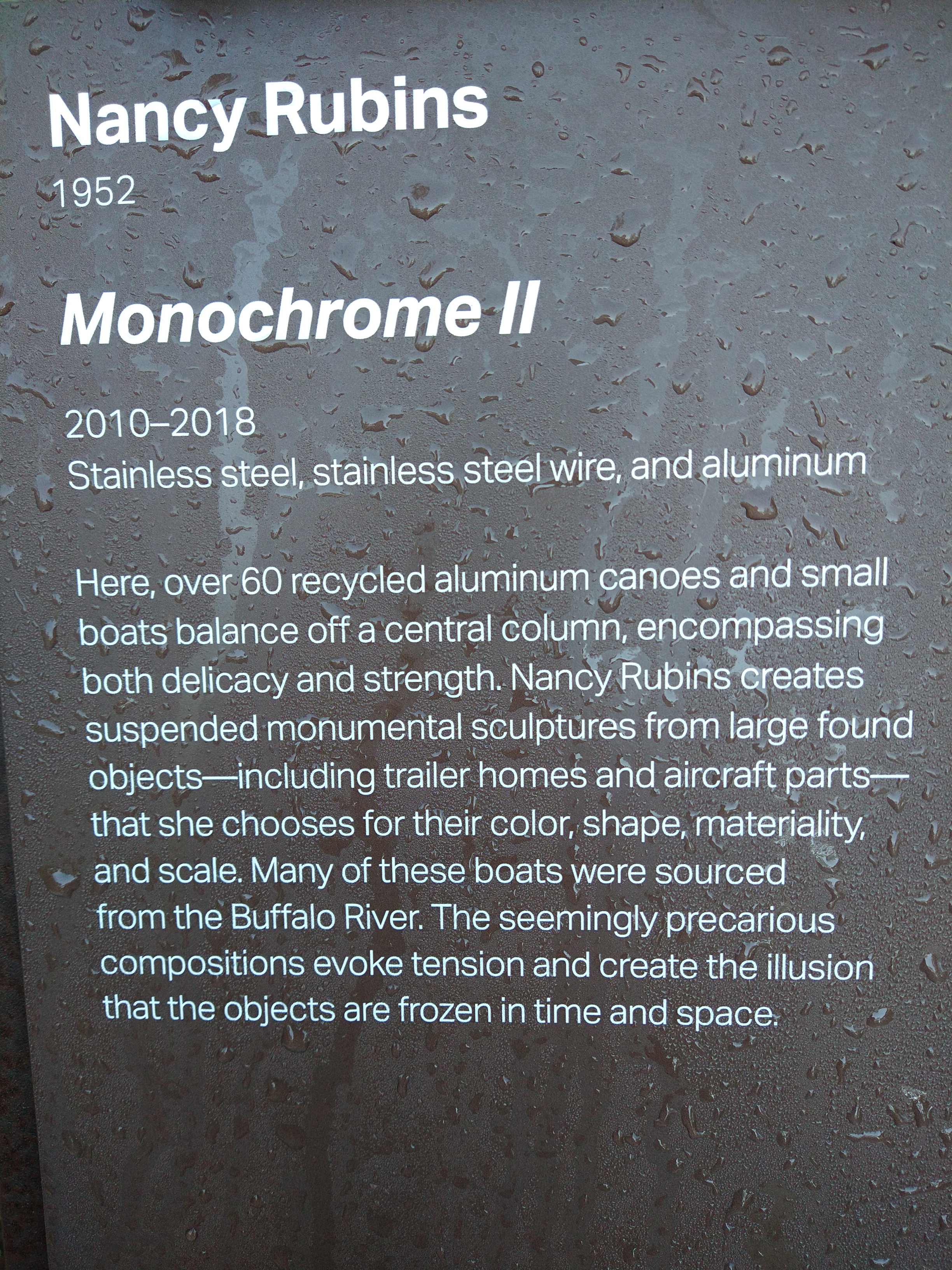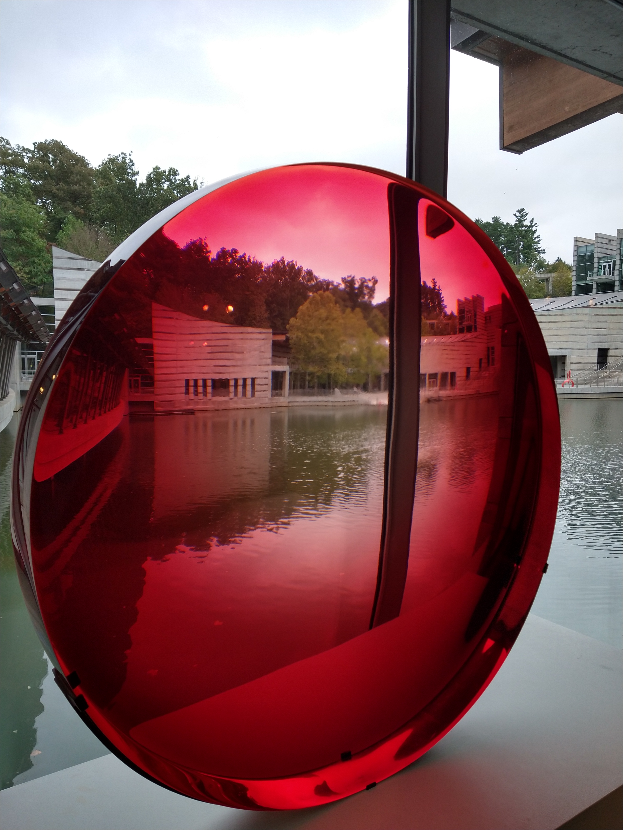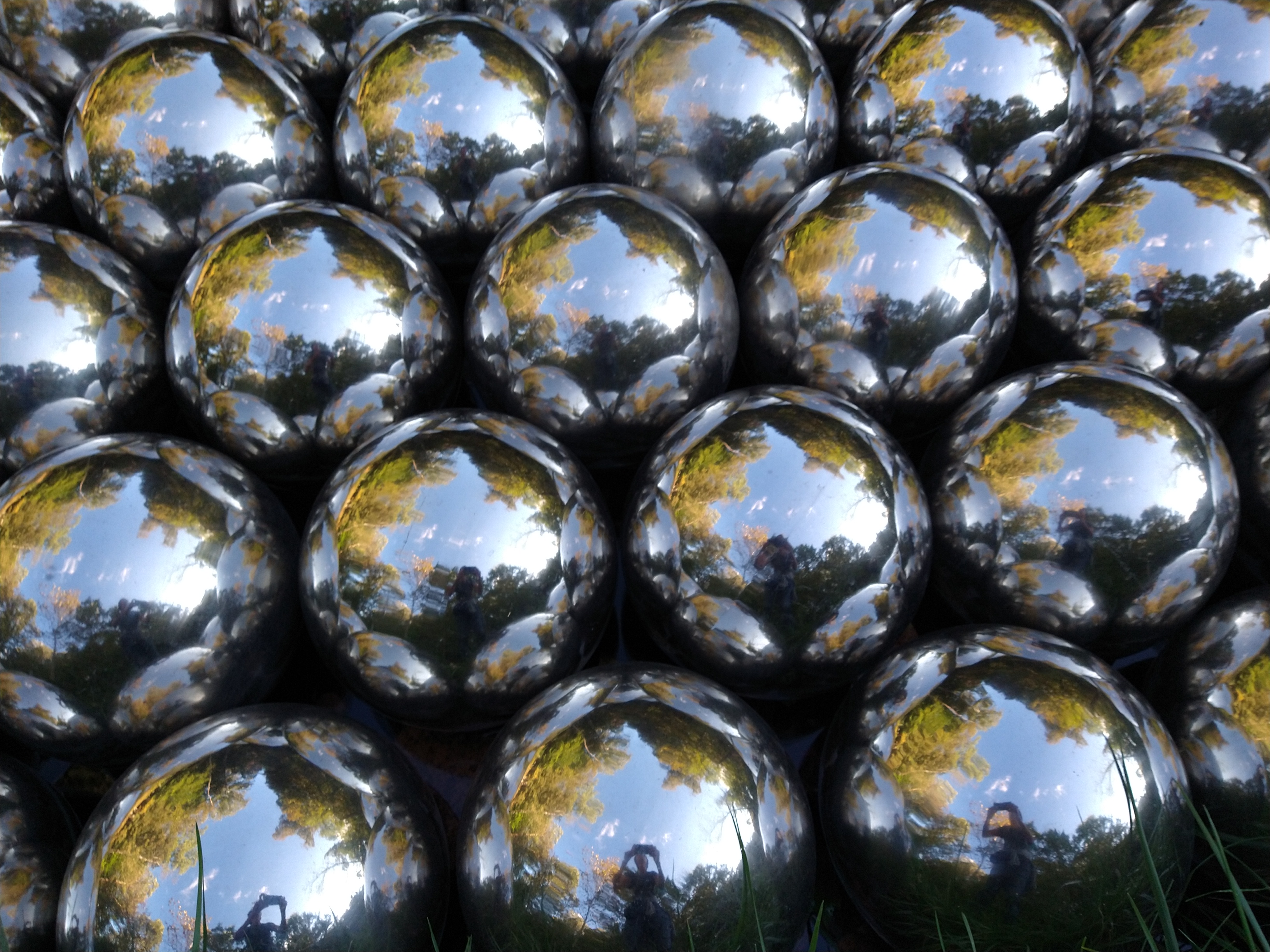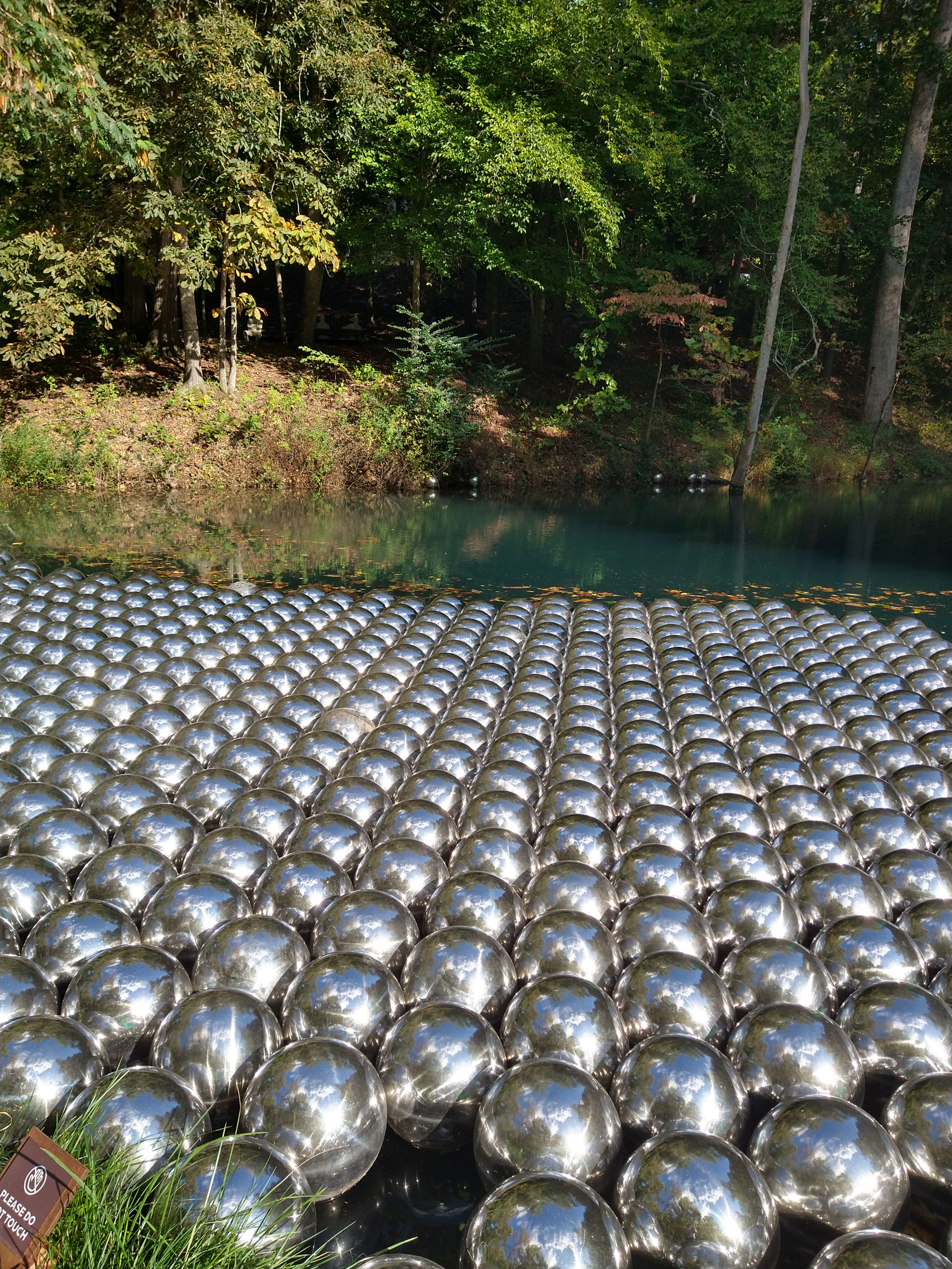 The above floating stainless steel balls in a pond were my absolute favorite! A slight breeze causes them to move against one another, creating a low and mesmerizing susurration. The visuals of them reflecting against each other, reflecting the sky, the trees, the photographer. The patterns they make. I can’t believe they don’t have a bench here. I could watch them, listen to them for extended periods of time.