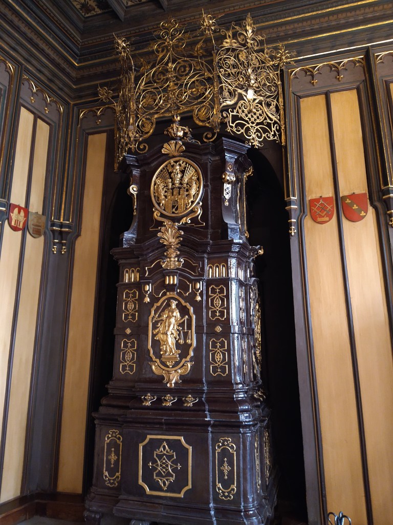 Castle stoves are beautiful and efficient. One was in use in the Prague Castle. We saw other examples in the Česky Krumlov castle.