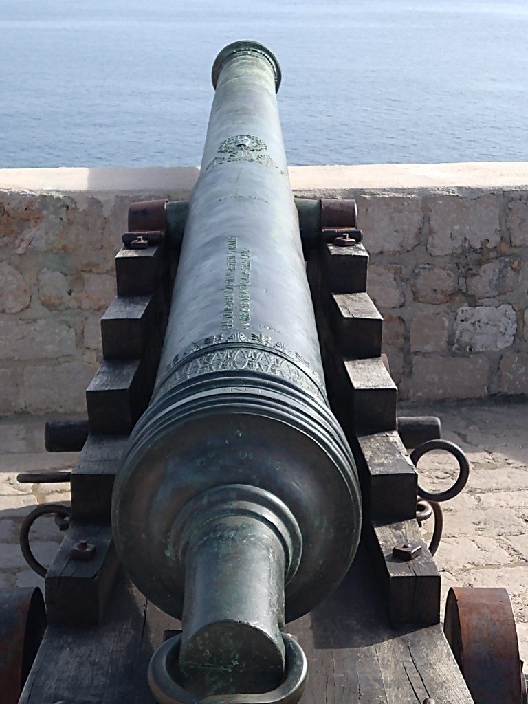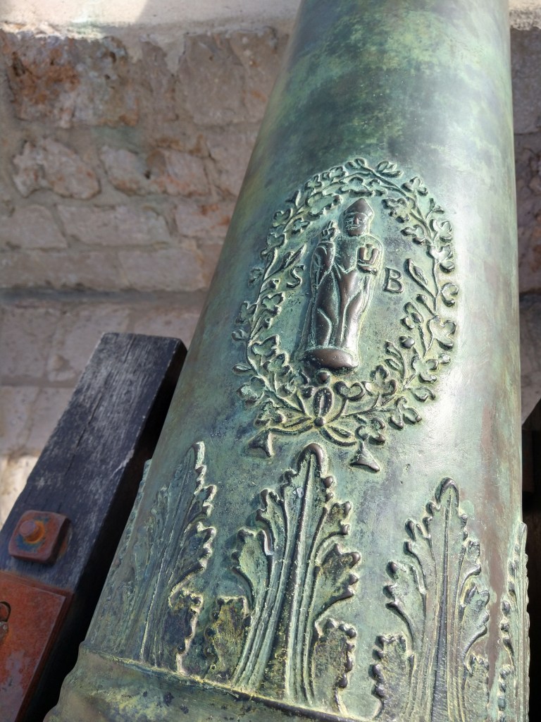 Europe is awash in beauty. Well, when you’re in the old town areas. There was exquisite attention to detail. Such ornamentation. Here is an example that struck me. A cannon at Fort Lorvijenak (Lawrence) in Dubrovnik.