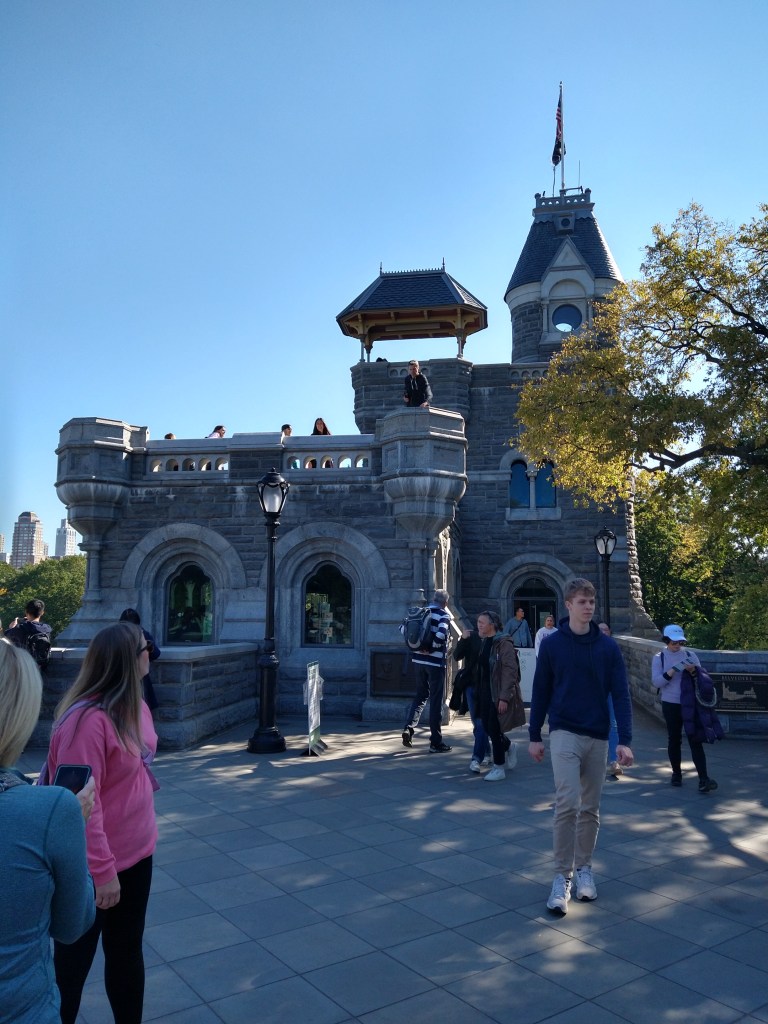 We secured a ride through Uber to our hotel. The line of people waiting to get a taxi was a half mile long, no lie. Our stay at the JFK Quality Inn was all we needed – clean, comfortable, and a free shuttle back to the airport to stow our packs while we enjoyed another day in NYC. It was a spectacular fall day, all sunshine and easy breezes. We headed directly to Central Park and the Belvedere Castle.