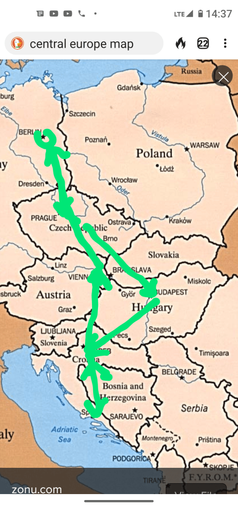 Also not included in the map: from Split we took a ferry to the island of Korčula and from there a ferry to Dubrovnik. From Dubrovnik we ferried directly back to Split.
