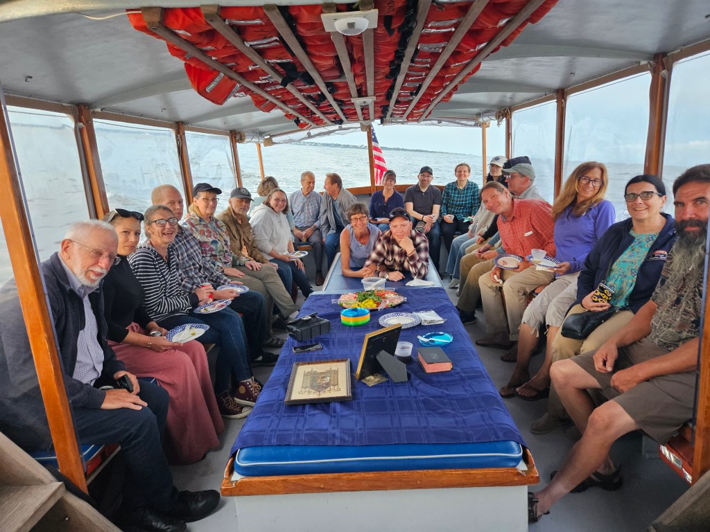 Meanwhile, our charmed lives brought an unexpected gift in the form of a complimentary wine tasting cruise on the Coastal Queen around Narragansett Bay. Thanks to Donna, my brother’s SO. She works for the company. I especially appreciated this as I was too focused on guests and organizing mom’s memorial the night before to appreciatethe view. Another perfect night for a cruise.