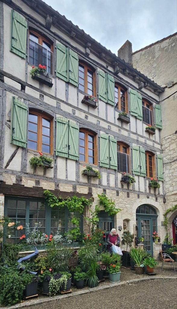 Moncuq is a dear small town, about 50% French and 50% Brits and Dutch, we were told by the Irish owner of Restaurant le 6. We stopped by there for a drink and dinner (eschewing the pilgrim dinner at the Gîte) after touring the town. I had such a good glass of wine 🍷 that I had a second.
