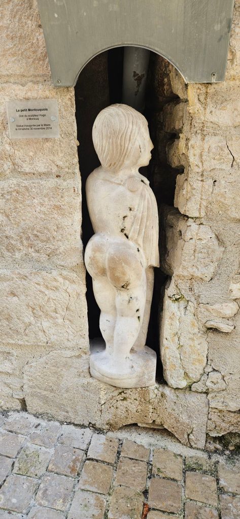 Moncuq is sometimes pronounced like mon cul(cou), which means my ass. Therefore, there are many jokes referring to one’s derrière. Hence this sculpture in town. However, most do pronounce the q. And I read that cuq is a transliteration from old Celt, kuk, meaning small hill.