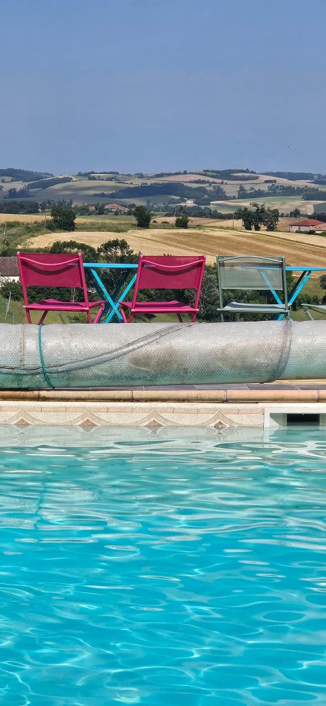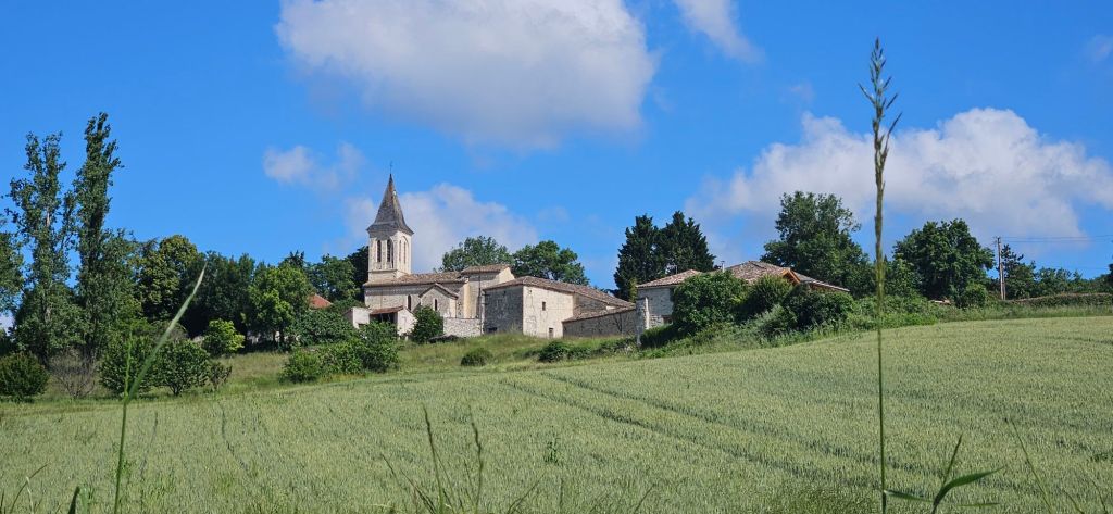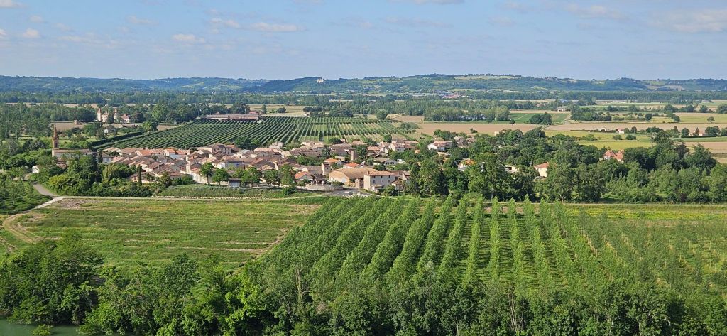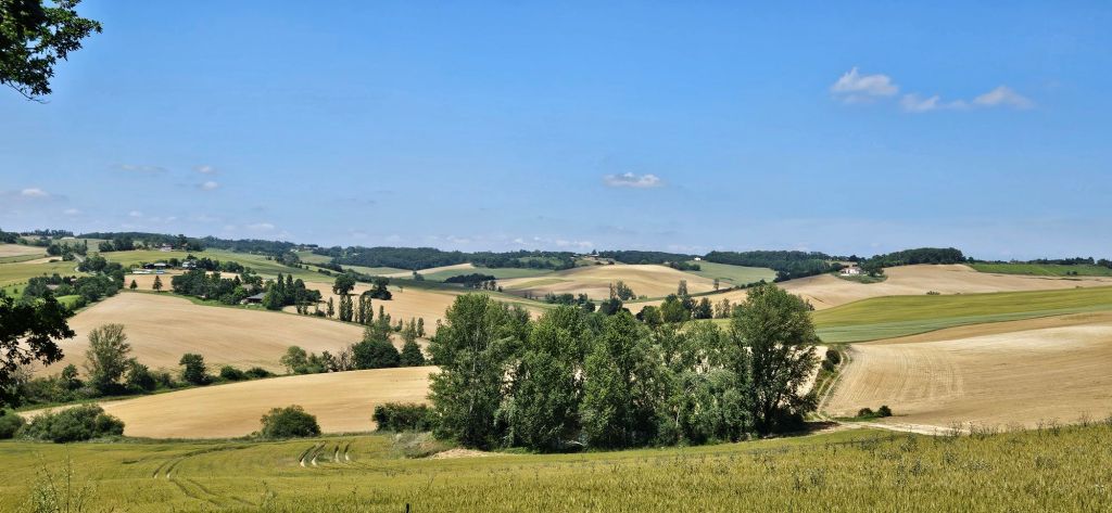 The pool and farmland beyond at our Chambre d’Hote in Miradoux, named La Fezendes, which is the Occitane word for farm.Rolling hillsTown of L’Espayac, we walked through yesterday, the 3rd June on our way to Auvillar