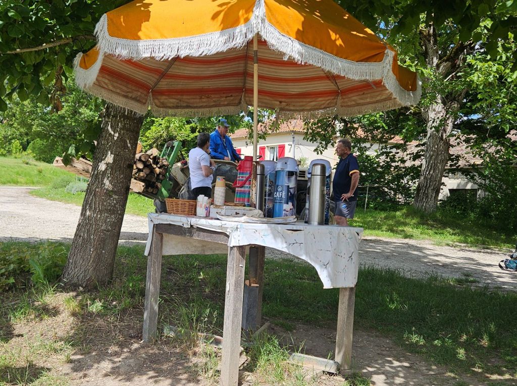 The two nights before last we were asleep by 9:30. After full days of walking, exploring a bit, showering, and having dinner, plus using my brain to speak French, we’re pretty exhausted. Last night though was a party. There were 18 of us at Gîte La Ferme Parry. The hosts like to provide a proper many course meal, though in a down to earth manner. We started with aperitif of either kir or whiskey. Red wine with dinner, tea and eau de vie after dinner. We had soup, duck rillettes, which is OMG delicious, pasta, duck sausage, cheese, and fruit salad for dessert. Bread, bien sur. Rillettes is shredded whatever, in this case duck and prepared I don’t know how. But I plan to find a recipe. La Ferme Parry is a working farm, specializing in duck and various fruits. There were some English speakers there, so that helped Ed. Me too, tbh. We didn’t get to bed til after 11. I slept deeply and soundly.