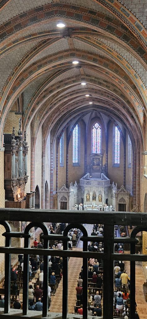 Which reminds me – wanted to hear the nuns sing inside the Cathedral for Vespers, but it turned into a procession outside. So. We’re here having a drink instead.