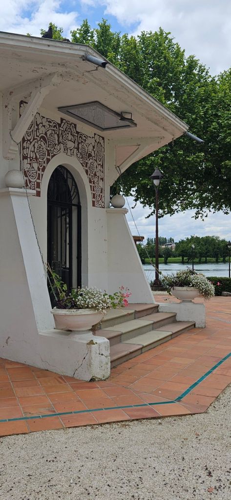 Stopped here for a drink, by the River Tarn, on the way back from the canal.Park by the river