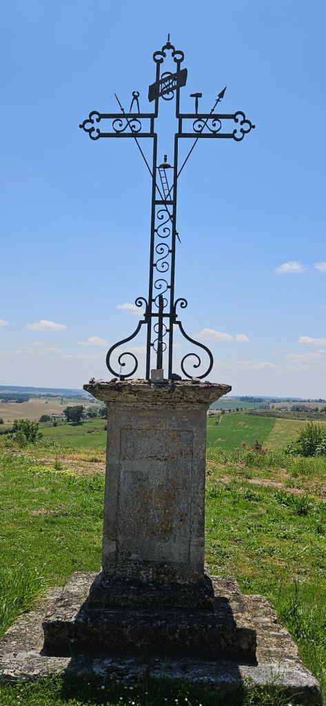 Today, June 5, was another pretty easy day of 10 miles past more acres of farmland. It was hot, but with a cooling breeze, so not bad. Until…arriving at our destination, Lectoure. A steep grade up. And when you thought you’d arrived at the top, more up to get to town. I’d much rather go up than down though. Down is hard on the knees and feet.