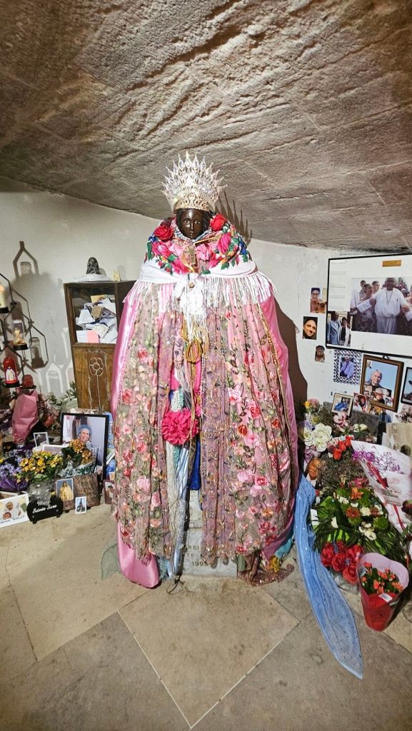 The gypsies make a pilgrimage there once a year in May to honor her. It was last weekend. Leaving the church, a woman handed me a card with a photo of Sara and a prayer on the back. She asked for money. I gave the card back.
