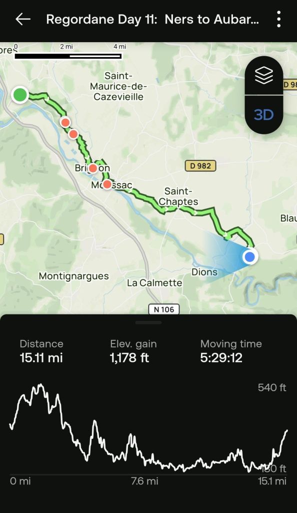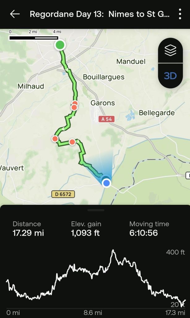 Now, if you’ve wondered why we didn’t walk from Saint-Gilles to Arles… We didn’t want to. Our commitment was to walk La Régordane. The route to Arles is flat, hot, and un