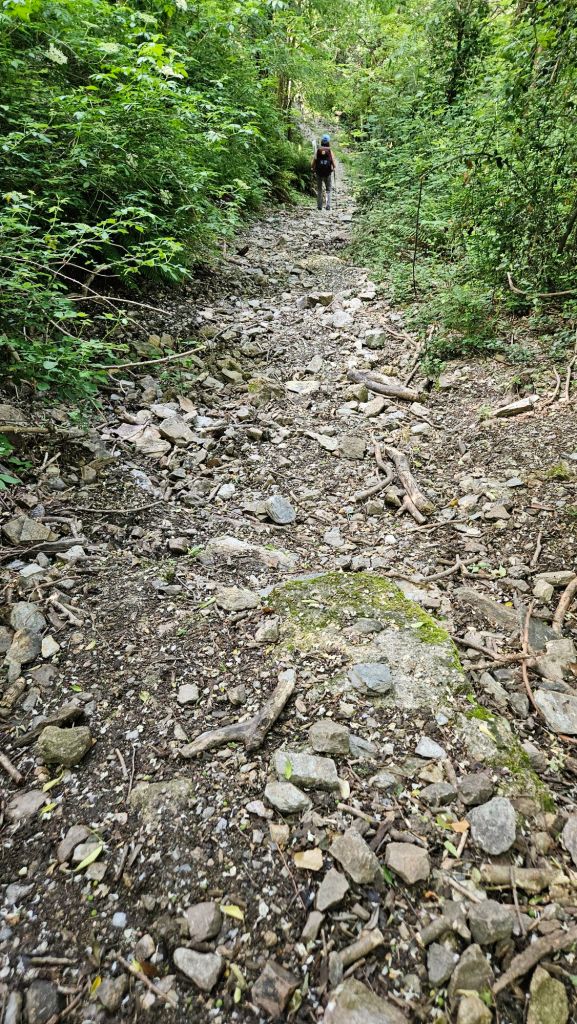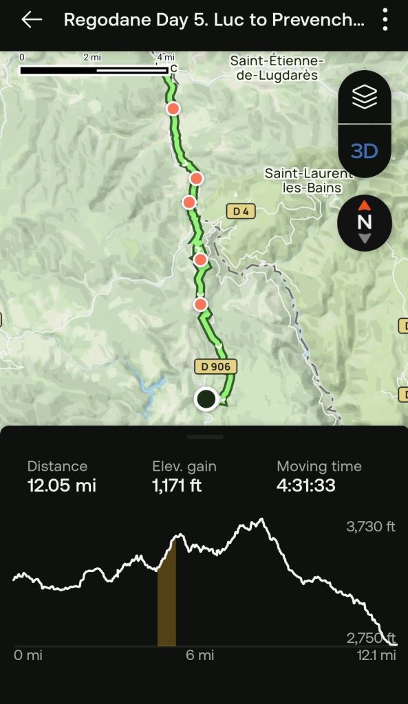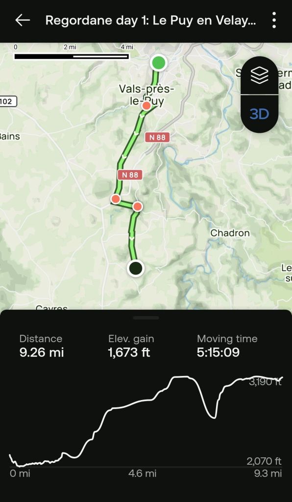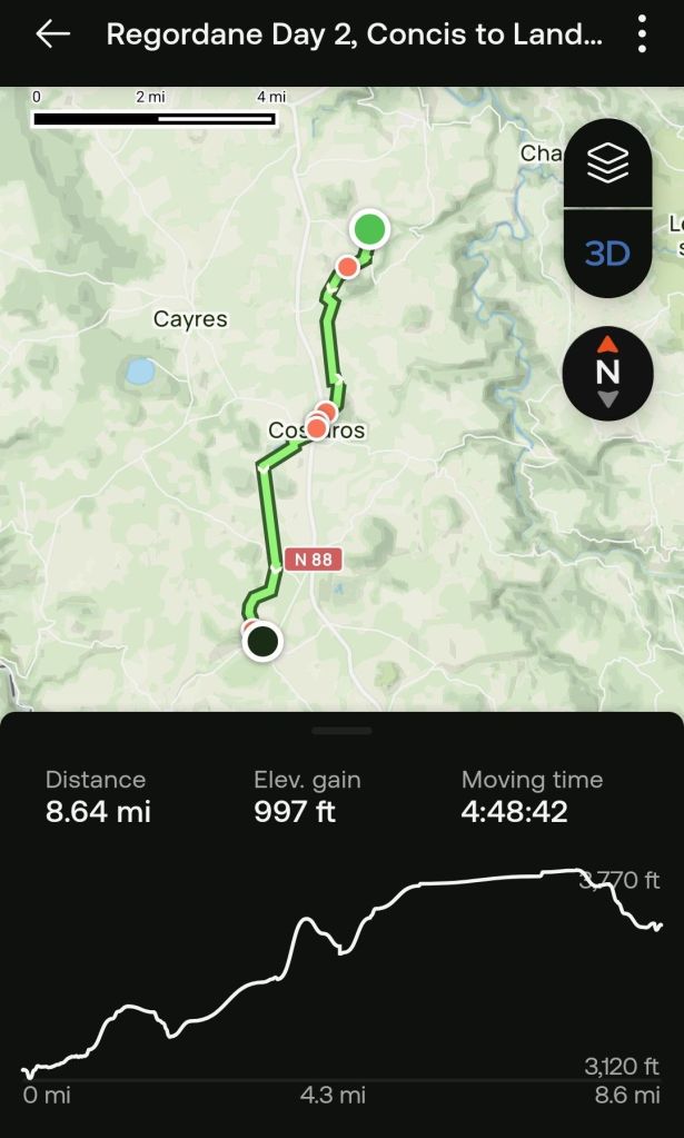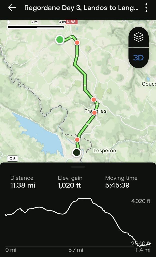 In addition to misjudging the elevation profile, I also misjudged the accuracy of the AllTrails map. Apparently, since the Alltrail map was generated, the group that maintains the Grand Randanné has made significant changes to the GR700 as it approaches the Ales metropolitan area. While in the middle of a forest where the waymarking was a bit vague, I trusted the AllTrails map guide to resolve an inconsistency and we ended up in an area where the we were separated from the trail by a fence, and there were no waymarkings to follow. Fortunately, there are plenty of trails that can be located on Google Maps, so we eventually found ourselves and the official trail. I guess it is adventures like this that keep us traveling.
